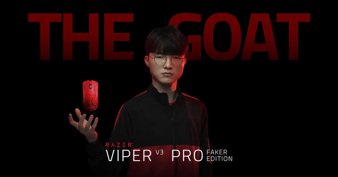 比如雷蛇旗舰产品——毒蝰V3 Pro。发售时,凭借着50出头的克重,成为了当时市场上最轻的鼠标。瞬间成为了不少MOBA和FPS职业选手的首选,甚至还和著名的LOL大魔王——Faker推出了联名款。