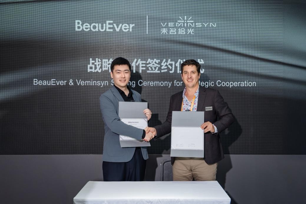 BeauEver 的双重合作签约环节是当天发布会的高光时刻:BeauEver不仅正式启动与 2 大全球实验室的合作,进一步扩容 “全球科研网络”;亦宣布与未名拾光签订战略合作协议,深化原料端协同。北京大学博士、未名拾光联合创始人李羽帆表示:“这不是简单的合作,而是从靶点发现到临床验证的全链条共创。”