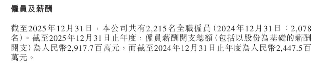 财报数据显示,截至2025年年末,地平线共有员工2215名,总薪酬约为29.18亿元,以此计算,人均年薪约132万元,较2024年的118万元又涨了近12%。