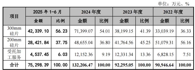 从产品收入结构来看,公司200mm硅片的收入占比由2022年的56.16%下降至2025年1-6月的37.75%,300mm硅片的收入占比则由36.33%提升至56.23%。