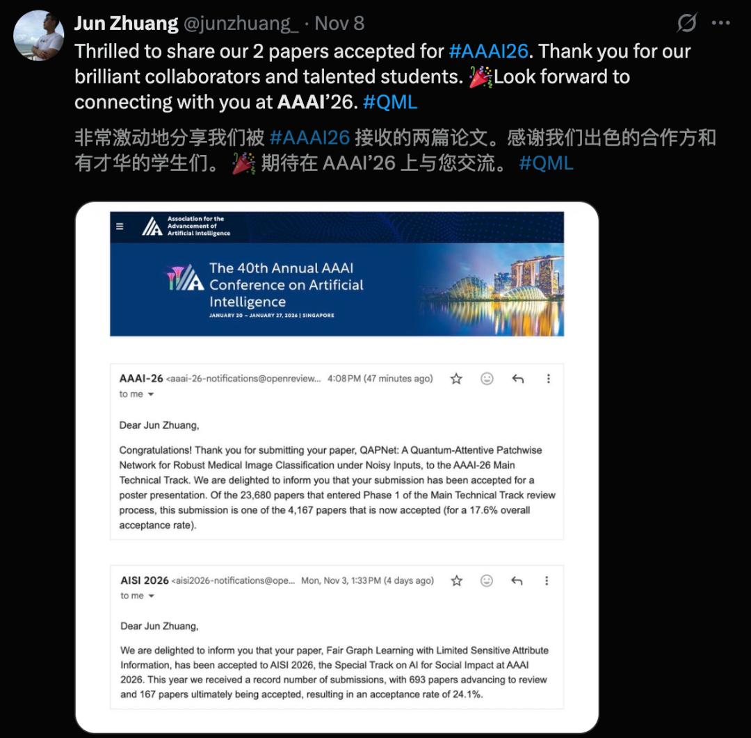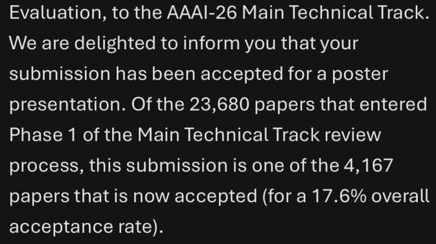 来自南洋理工加小俊分享了,自己和团队在AAAI 2026上连中五篇,其中3篇Poster,2篇Oral。