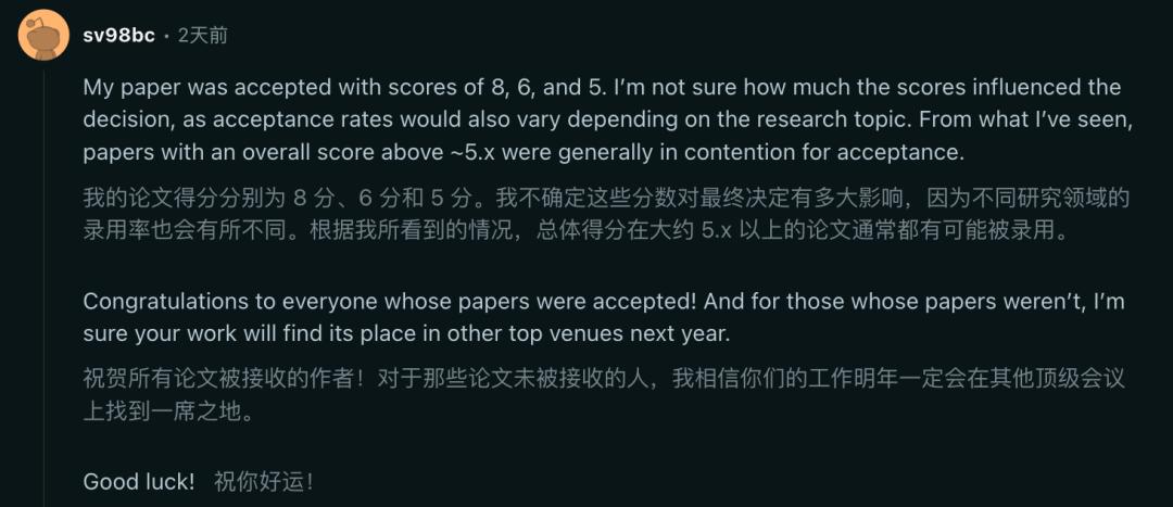 另有作者表示,根据自己了解情况,总体得分大约在5分以上论文都有可能被录用。