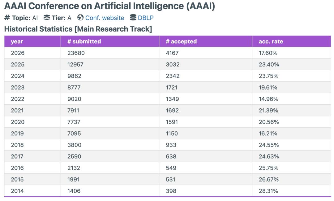根据openaccept统计,AAAI 2026录用率是近三年来最低的一次。这对于投稿人来说,并不是一件好事。