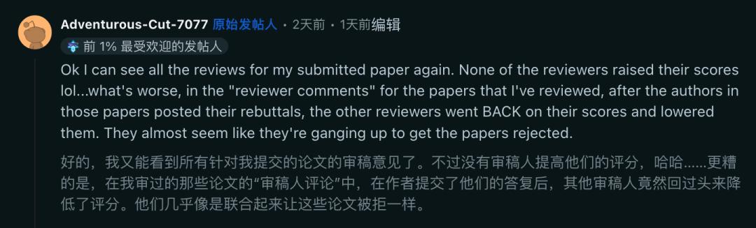 更离谱的是,还有那些刚提交rebuttal的作者,其他几个评审反手就把分数给调低了。