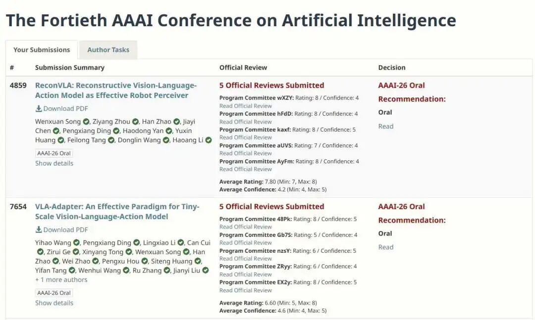 来自香港科技大学(广州)的博士生宋文轩,也斩获了2篇Oral论文,均是关于VLA(视觉-语言-动作)大模型的研究,其中一篇ReconVLA拿到了88887高分。