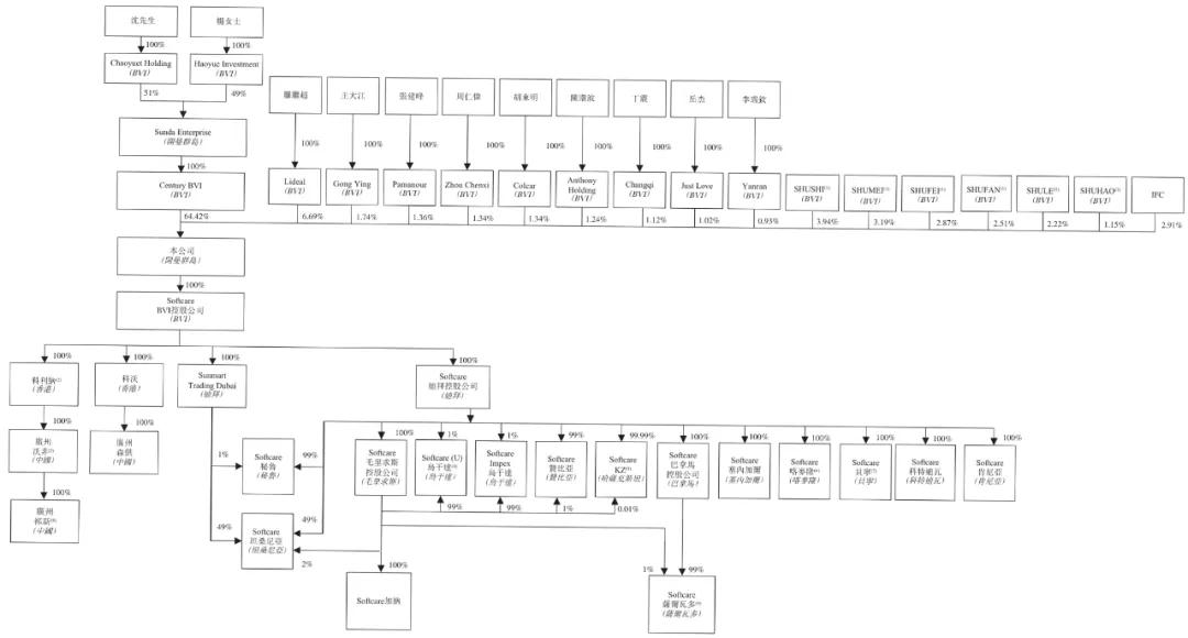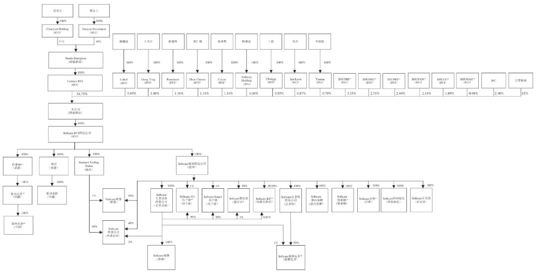IPO前,沈延昌、杨艳娟女士通过CenturyBVI控制公司66.42%股权。