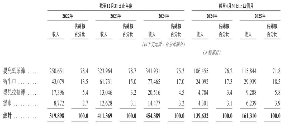 乐舒适2025年前4个月婴儿纸尿裤收入为1.16亿美元,占营收的比例为71.8%;来自卫生巾收入为2994万美元,占比为18.5%;来自婴儿拉拉裤收入为929万美元,占比为5.8%。