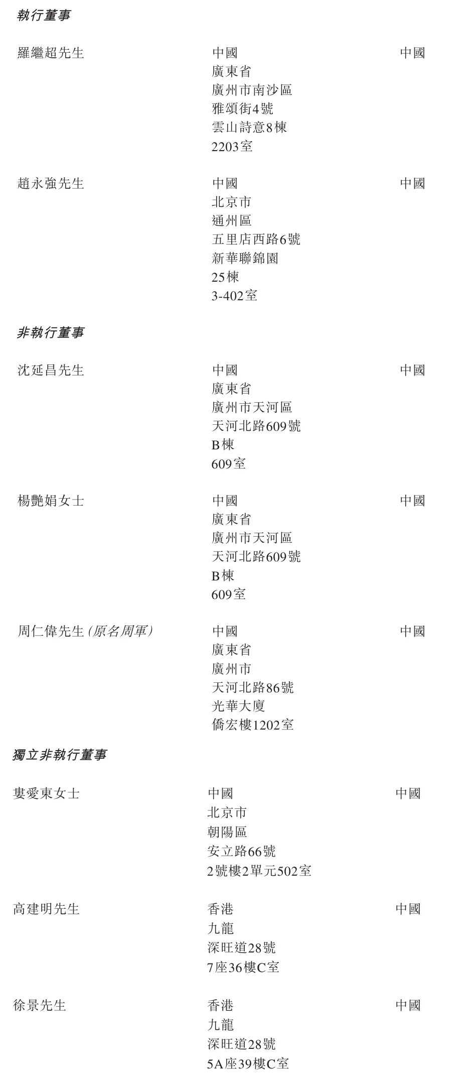 乐舒适执行董事分别为罗继超、赵永强;非执行董事分别为沈延昌、杨艷娟女士、周仁伟先生(原名周军);独立非执行董事分别为娄爱东女士、高建明、徐景。