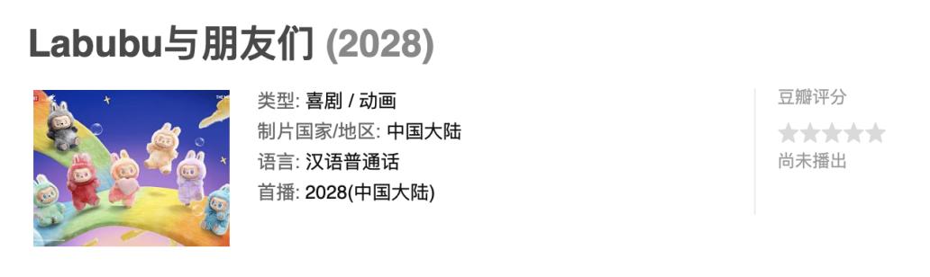 需要注意的是,豆瓣条目显示《Labubu与朋友们》首播年份跳到2028,期间有三年空窗期。