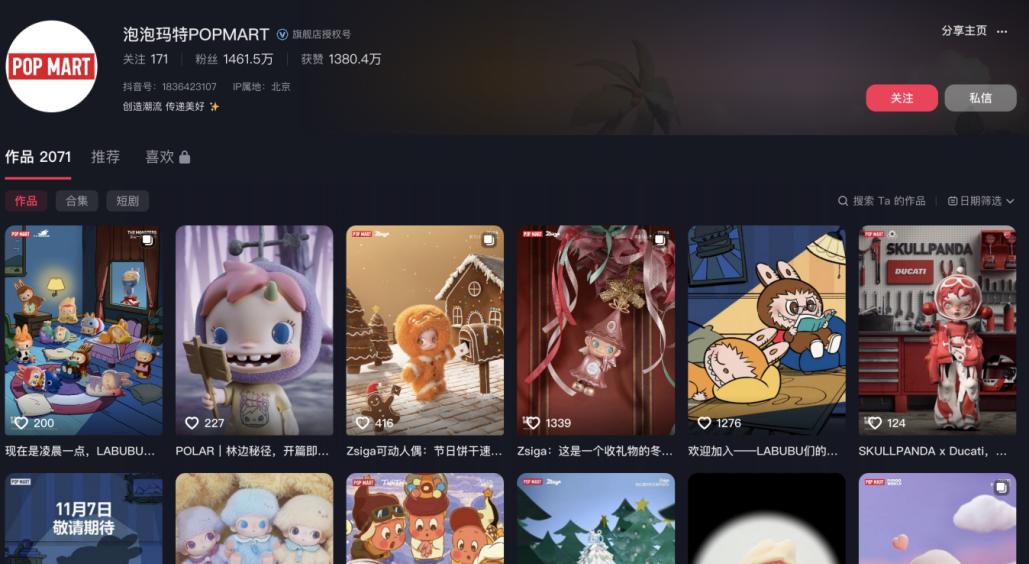 不止动漫,泡泡玛特同时在B站和抖音投放关于Labubu的“碎片化日常”,意图用影视和沉浸式表演把潮玩升级为“文化符号”。