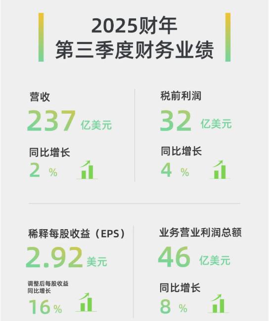 华特迪士尼公司公布截至6月28日的2025财年第三季度财报显示,营收237亿美元,同比增长2%。