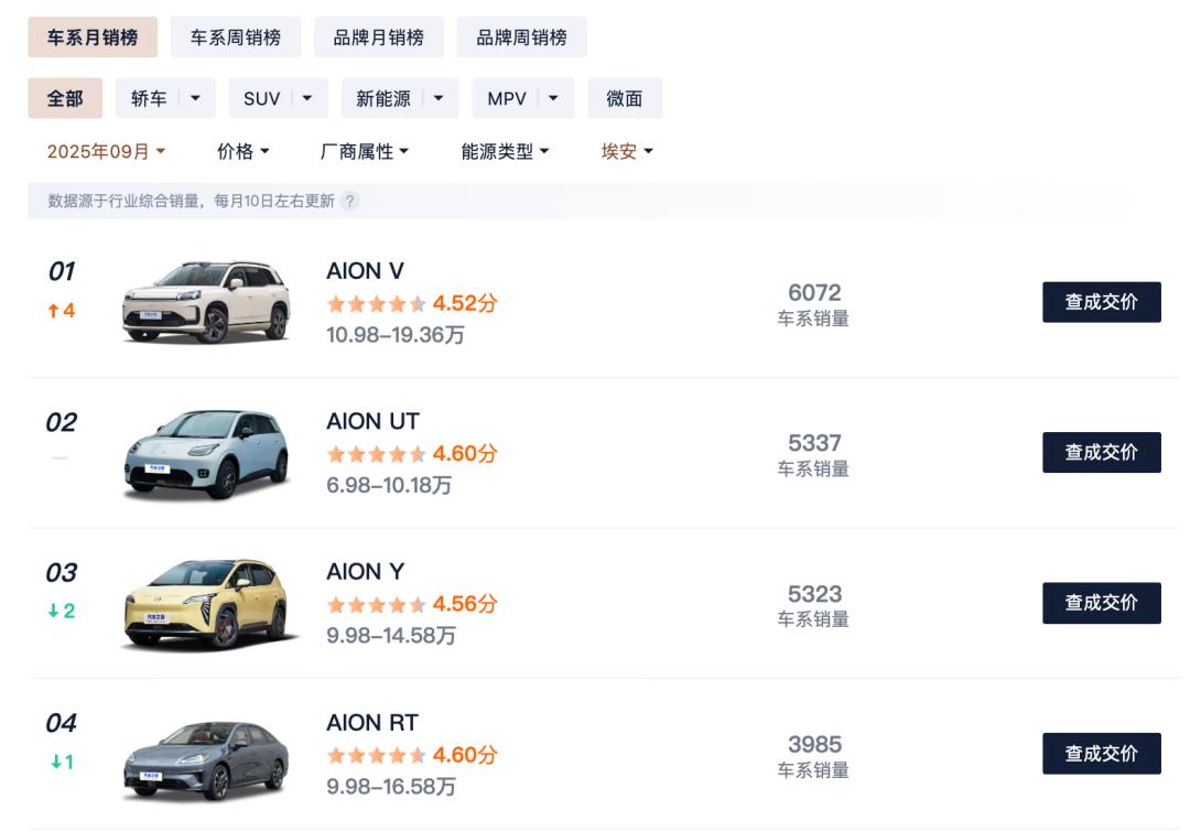 但目前来看,曾被寄予厚望的新车并未达到月销1.5万辆的“爆款”预期,汽车之家统计的数据显示,埃安UT和RT月销量稳定在3000-6000辆左右。除品牌被“网约车”标签固化外,埃安的产品策略同样让一部分私人用户望而却步。