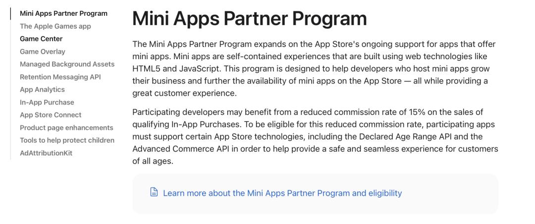 也就是说,小程序在 iOS 上终于不是灰色地带,而是被承认、被规范、被商业化的应用形态。