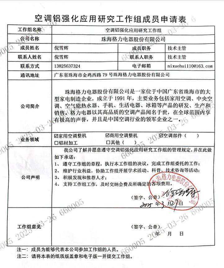 但据界面新闻获得的一份《空调铝强化应用研究工作组成员申请表》显示,去年3月27日,格力曾主动申请加入“铝代铜”工作组。