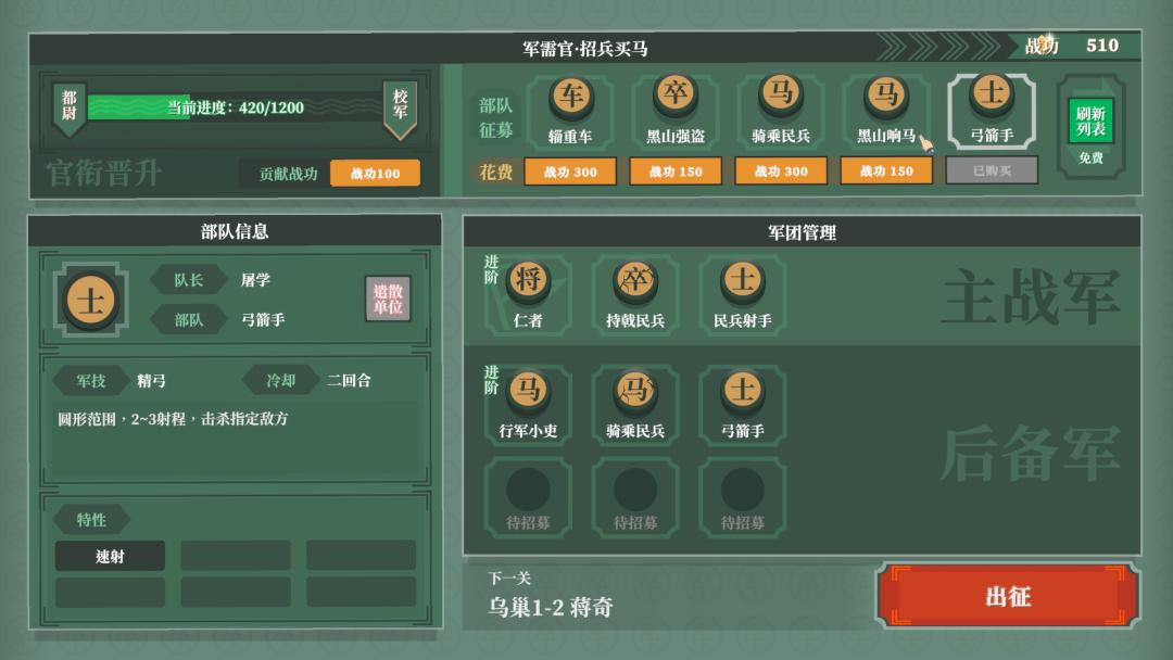 花时间最久的环节是最初给游戏定基调,他们前后做了好几版demo,研究应该允许玩家控制多少棋子,从一颗、三颗到一个军团都有所尝试。最终,他们选定了现在的初始3颗棋子、可以在盘中再增加棋子的机制,再配合上类似《陷阵之志》的关卡设计。安德鲁觉得这样更符合三国战场上军队统领的感觉。