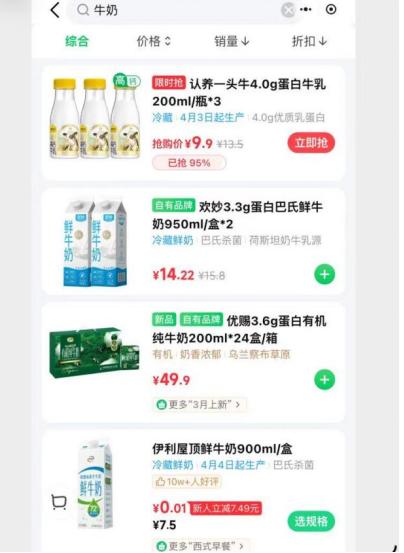 别误会,生鲜平台的鲜牛奶动辄9.9元/升,我当然没有兴趣拎上一升牛奶在通勤路上做力量训练。但站在冷柜前,目光扫过那些密密麻麻的价签,我觉得是有几分抽象的。