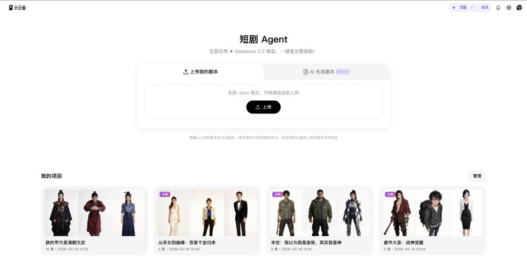 实际上,小云雀AI已经在一个月前开始了工业化量产方向的布局,通过上线短剧Agent,帮助从业者实现“剧本一键出片”,原本耗时费力的拆本、分镜、抽卡环节,被整合进进一套自动化流水线。