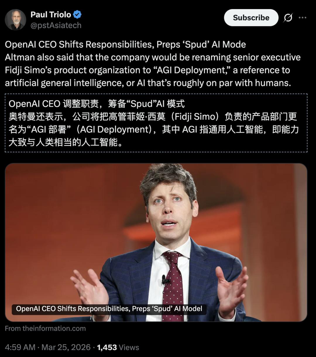 确实,下一代GPT Spud「土豆」已经呼之欲出。