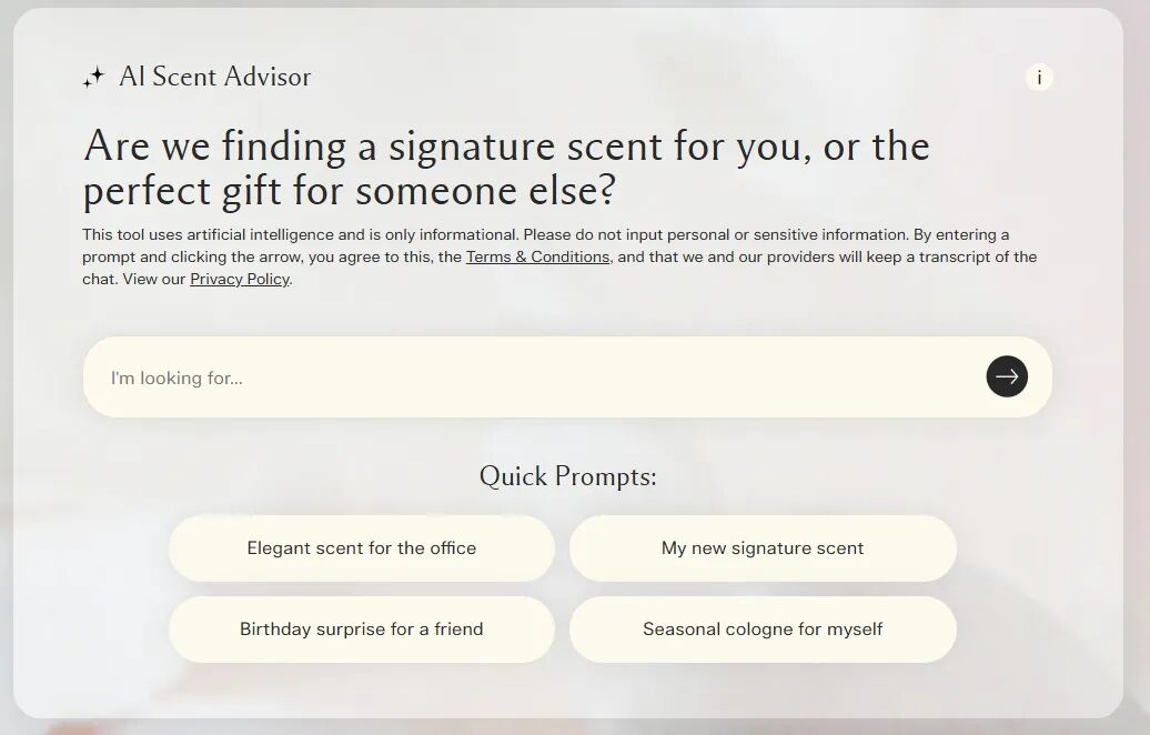 又或者借助AI解决用户的实际痛点,提供从前未曾有过的特别体验。像祖玛珑推出的AI香氛顾问“Jo Malone London Scent Advisor”,通过线上聊天判断用户偏好、场景需求,生成个性化推荐;路易威登旗下彩妆系列「La Beauté Louis Vuitton」则与玩美移动(Perfect Corp)合作,在全球33个市场推出AI+AR虚拟试妆,提供24款妆容线上体验。