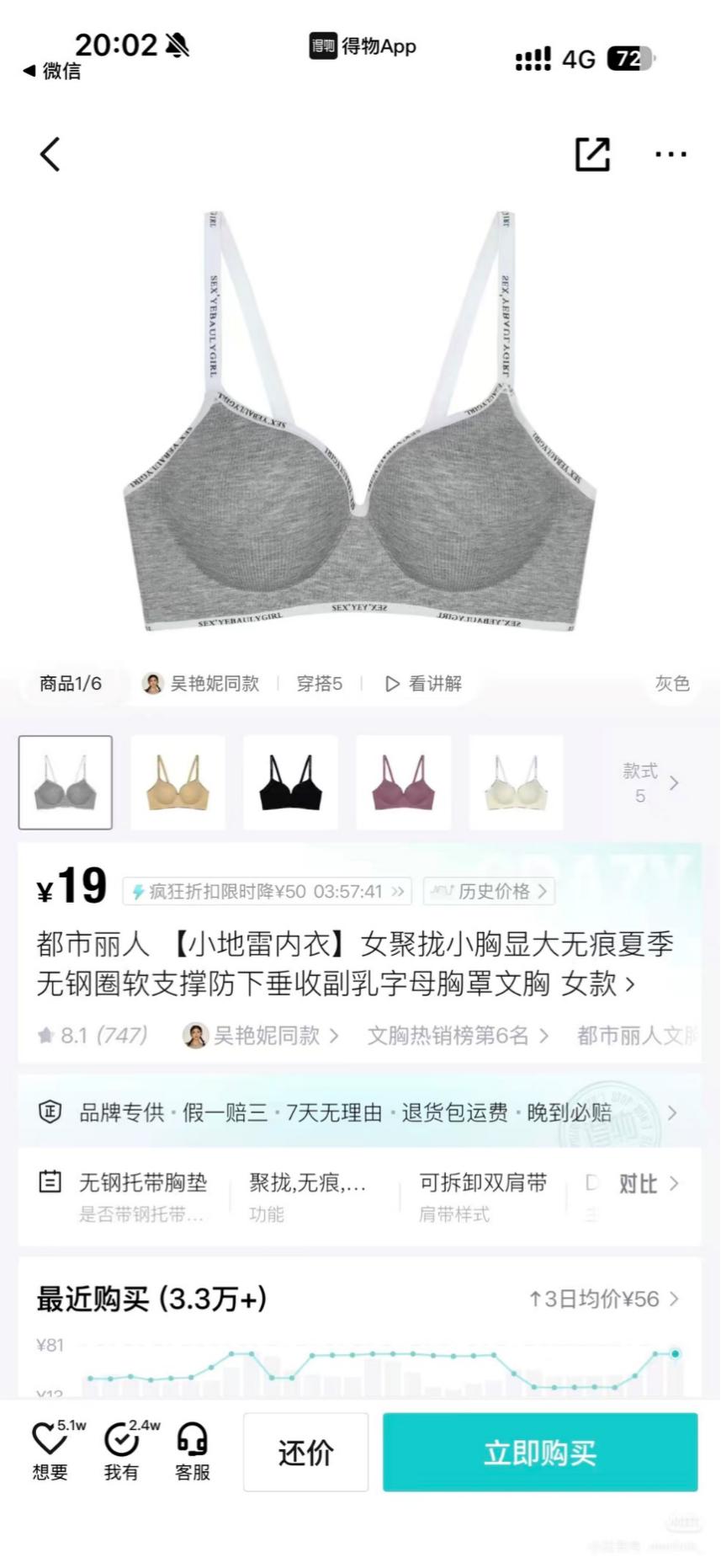 有网友在得物APP上逛内衣时,发现都市丽人一款文胸的标题,赫然写着“小地雷内衣”。