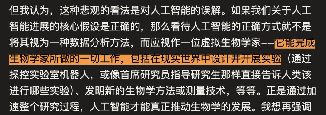 正如Amodei在文章中判断的那样:AI要能执行、指挥、改进生物学家做的几乎所有事。