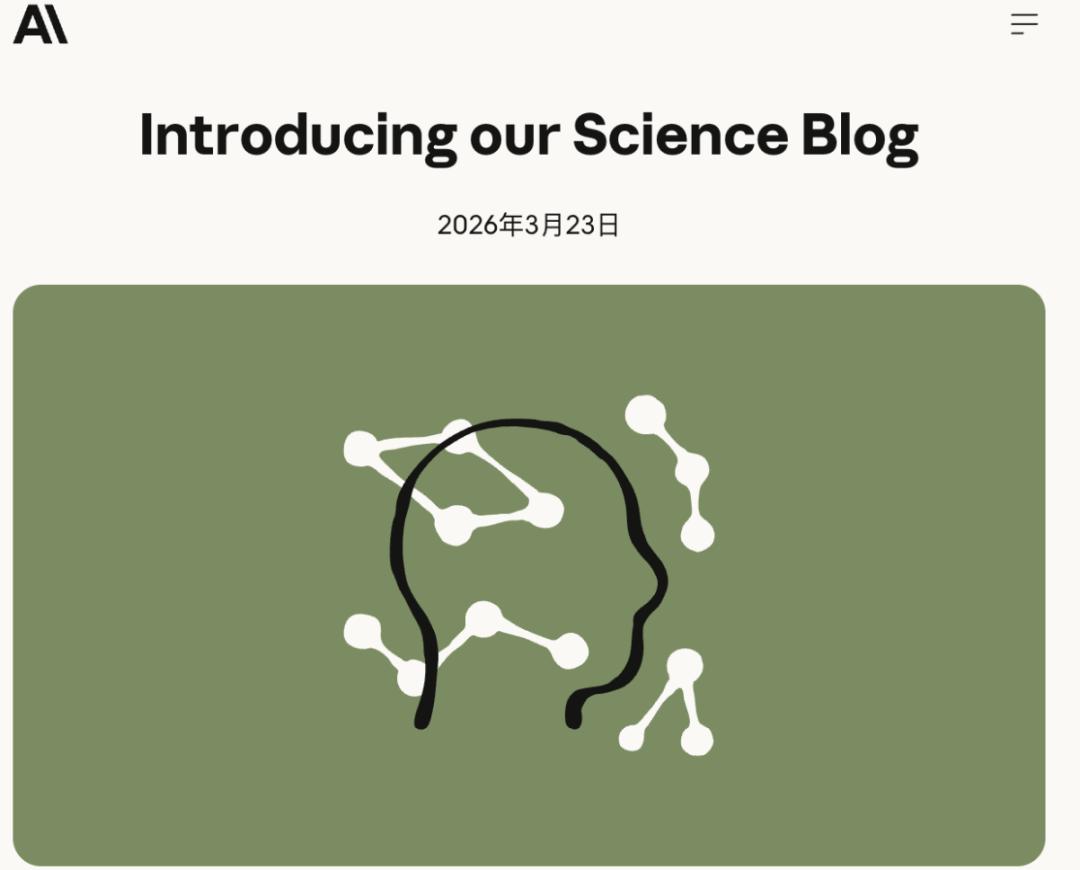 2026年3月上线的Anthropic Science Blog,科学能力开始成为Anthropic独立叙事线https://www.anthropic.com/research/introducing-anthropic-science