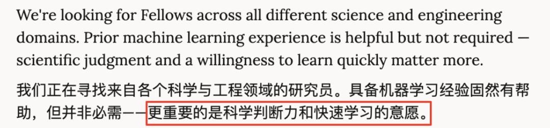 在STEM Fellow的岗位说明中,Anthropic称机器学习经验有帮助,但不是必需,而科学判断力和快速学习的意愿更重要。
