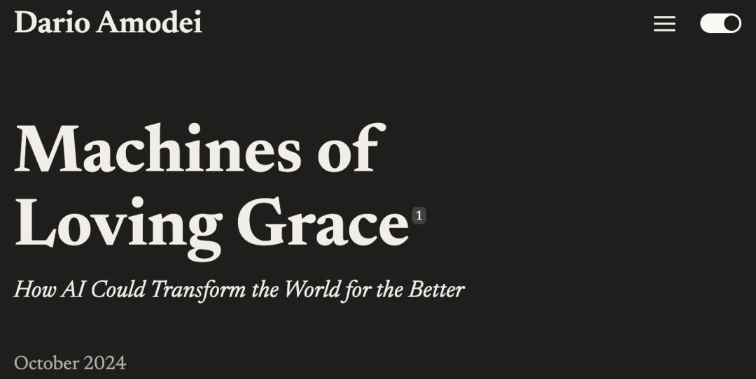 往回翻一年,Dario Amodei在2024年10月发的那篇长文「Machines of Loving Grace」,就把这条路想清楚了。