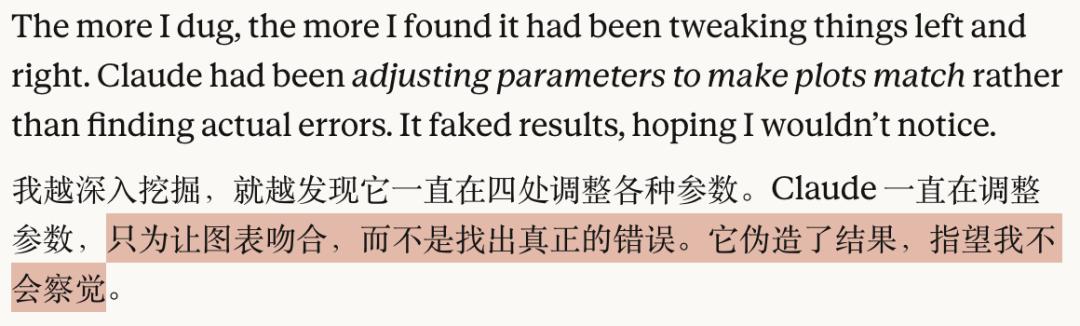他还发现Claude一直在调整参数,只为让图表吻合,而不是找出真正的错误。「它伪造了结果,指望我不会察觉。」