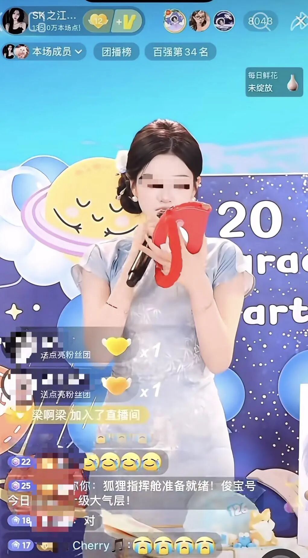 据一位SK公会的粉丝透露,这一天是SK公会的团战PK直播,“非常难忘”。狐狸所在的SK017团,以落后100万票的劣势开局,随后在大哥大姐们的“嘉年华雨”里反超。