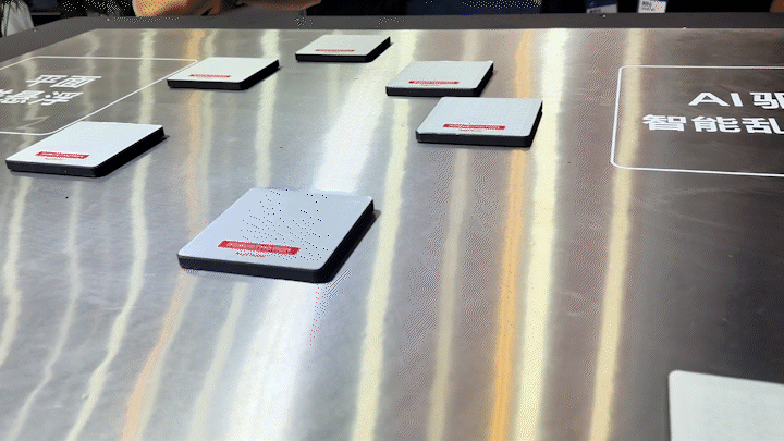 增广智能的核心产品——平面磁悬浮智能输送系统(磁悬浮魔毯),看起来像一张由正方形定子方块拼成的“桌面”。产品动子(载板)可以在桌面上无接触悬浮,并以最高2G的加速度、微米级的定位精度自由运动。