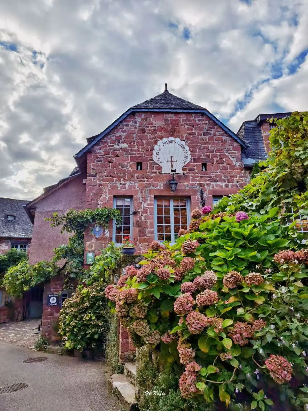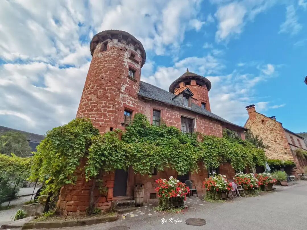 教堂与市场旁的街巷,是科隆日拉鲁日的中心地带,一座座造型各异的红墙建筑沿着弧形街道排开。街角的拉马德·德·弗里亚克之家,是弗里亚克家族的财产,16世纪末建成,两个瞭望塔守护左右。它的外墙布满爬藤植物,门前摆放鲜花。不远处的另一座宅邸,红墙与灰蓝色窗框的搭配极美,墙身上有一个大大的贝壳形标志,院墙大片大片的绣球花映衬红墙,如今是一座酒店。以一道拱形门廊立于路边的美人鱼之家,始建于16世纪,为哥特式建筑,如今是科隆日拉鲁日的艺术与传统博物馆。