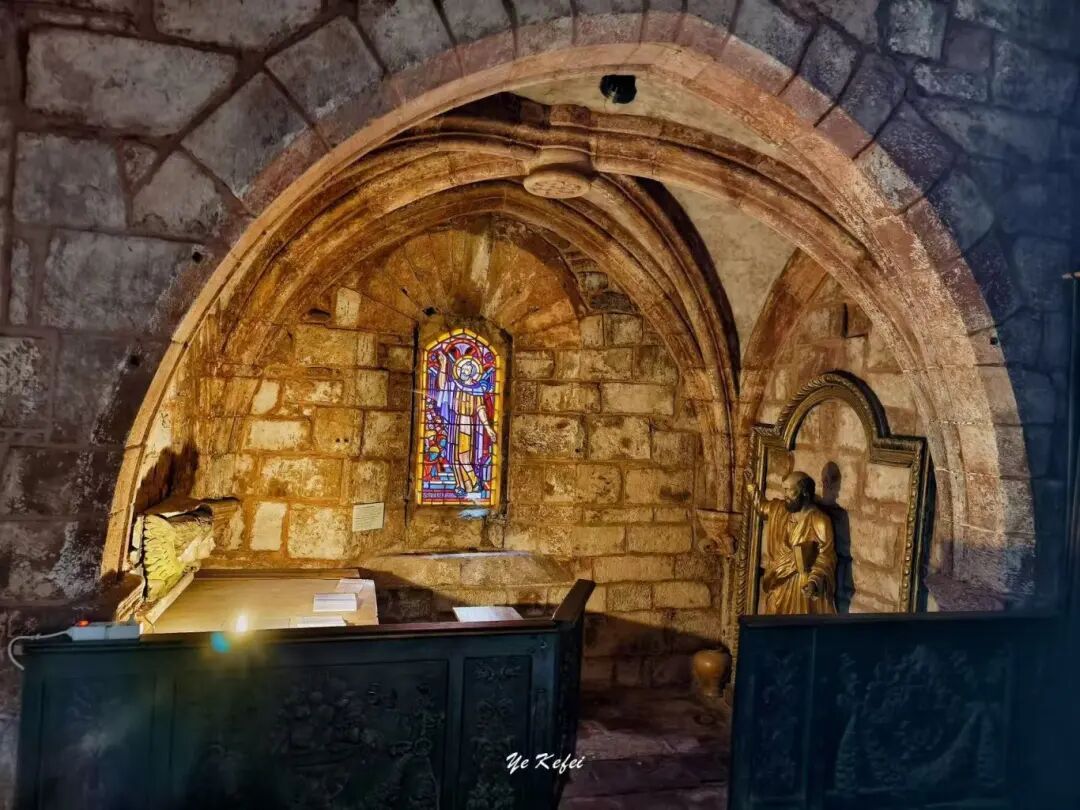 占据城镇最高点的是建于11世纪至15世纪间的圣彼得教堂,其原址本是一座建于8世纪但后来被毁的教堂。它采用罗马式风格,钟楼高耸,是利穆赞地区最古老的教堂钟楼之一。钟楼建于百年战争期间,由当地人集资兴建,用于瞭望和报警,以抵御英国人的进攻。内部古朴,石墙斑驳沉静,只有几面花窗各自汲取阳光,在大厅内交织碰撞。