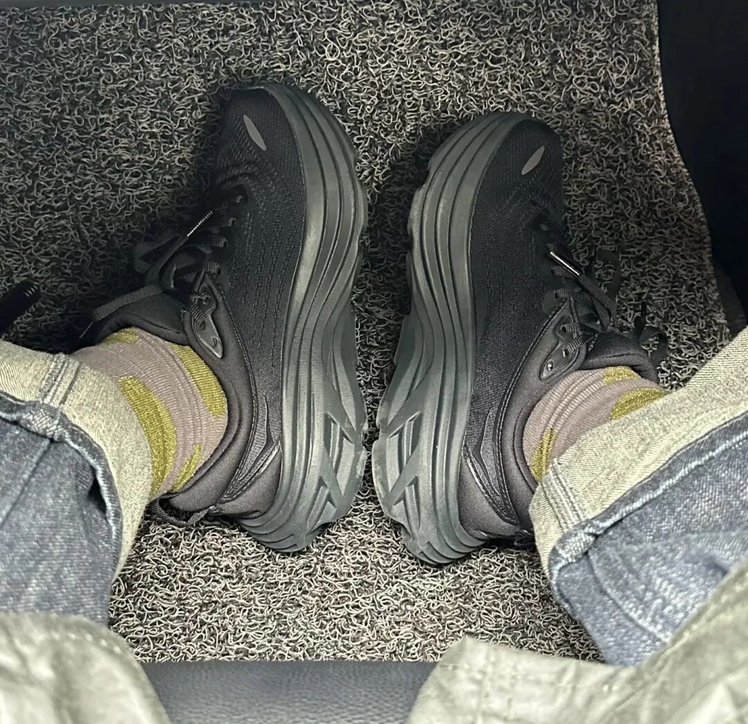 在奶茶公司上班的林正经在两三年前就被同事推荐了HOKA,但因为觉得丑,一开始并没有买。去年年底,她终于在线上以1200元买了一双纯黑HOKA。第一次上脚,她感受到了一种“踩屎感”,“轻盈,而且省力。”