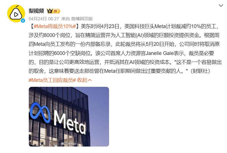 还有一些企业则享受到了“AI裁员”带来的股价红利。最近,金融科技公司Block在业绩良好的情况下宣布裁员约4000人,理由是“AI从根本上改变了运营公司的意义”,消息一出,股价盘后暴涨超23%;Meta、亚马逊等巨头也以AI提效为名推进万人级裁员,两家巨头的股价均在裁员消息后上涨。