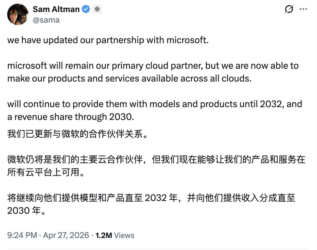 就在刚刚,微软与 OpenAI 联合宣布,双方完成了合作协议的新一轮修订:云合作独家限制正式解除,知识产权授权从独家变为非独家,收入分成也重新划定了天花板。