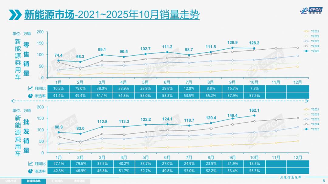 乘联会数据显示,10月新能源汽车零售渗透率为57.2%,较9月环比微跌0.7%。