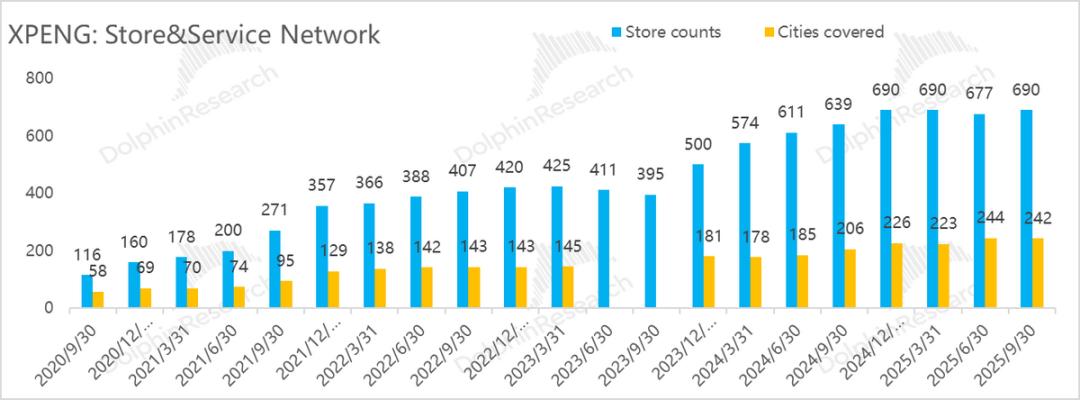 而从渠道的新增来看,本季度小鹏门店数环比上季度677家新增了13家至690家,主要为新车型的上市加大渠道铺设。