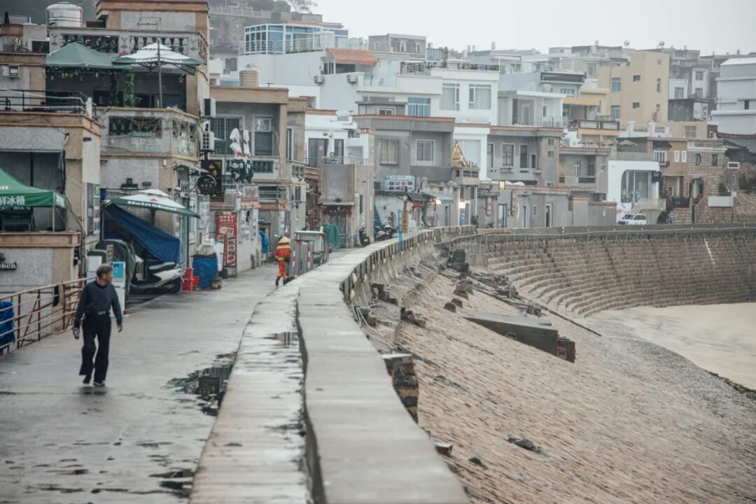 沿着山坡,民宅一栋一栋逐级而上;沿着海岸,堤坝蜿蜒向前;两者中间,仅隔着一条狭窄小路。