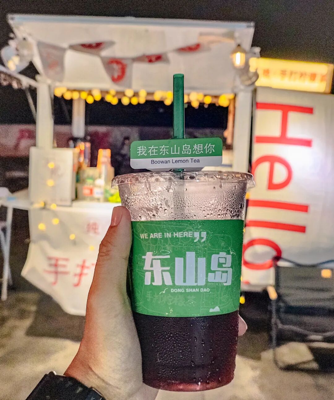 夜幕降临,渔村的气氛却因此活跃。不晚柠檬茶的老板是随和可爱的一对夫妻,早上跑跑外卖,晚上出摊时间全凭心情。