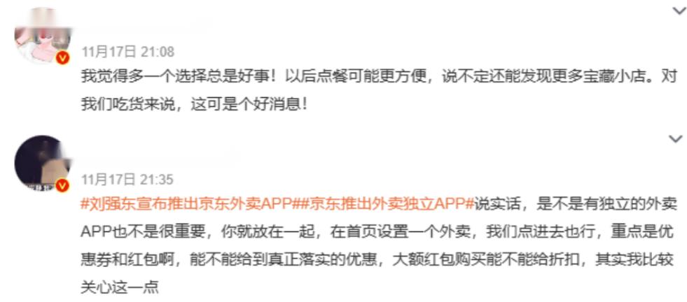 11月17日,刘强东宣布京东外卖独立APP正式上线。他提到了一个非常实在的用户痛点:“刚推出外卖的时候,很多用户反馈找不到我们的外卖入口。”
