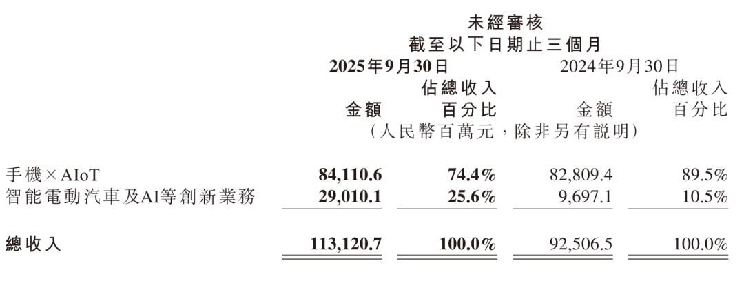 小米集团2025年第三季度智能电动汽车及AI等创新业务分部收入290亿元,同比增长超199%。