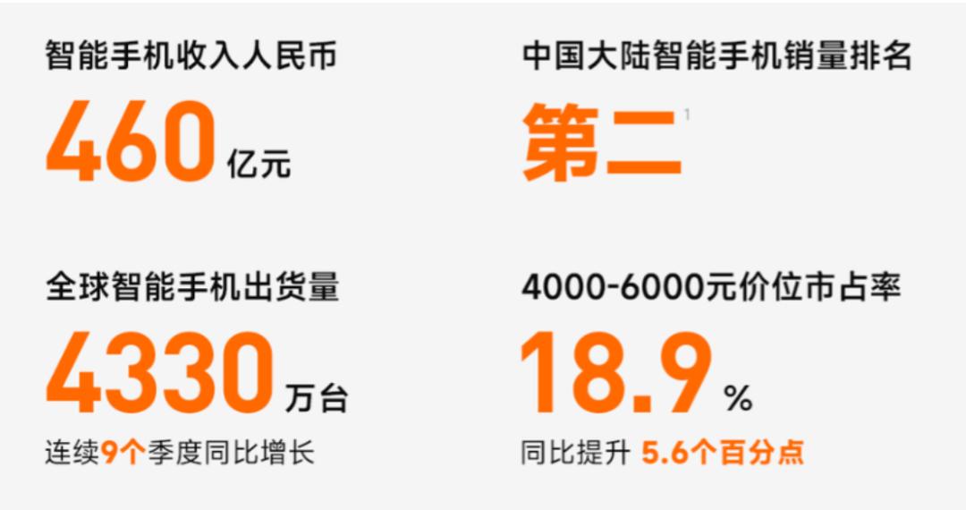 小米集团2025年第三季度手机×AIoT分部收入841亿元,其中智能手机业务收入460亿元,本季度小米智能手机全球出货量4330万台,同比增长0.5%。