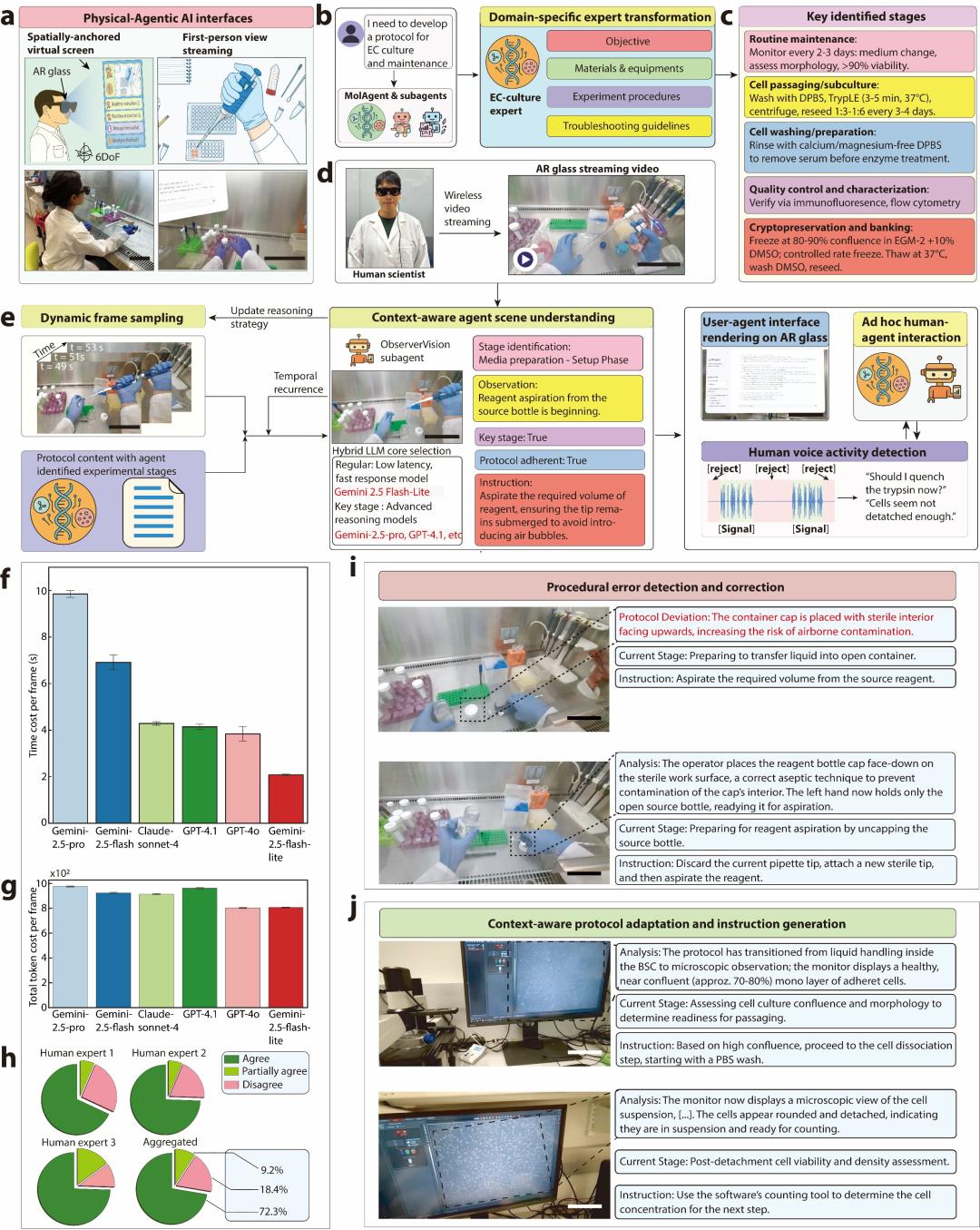 Agentic Lab的增强现实(AR)人机共融界面,通过多智能体协作实现实验阶段识别、操作纠错与实时指导,支持细胞与类器官实验的闭环协作