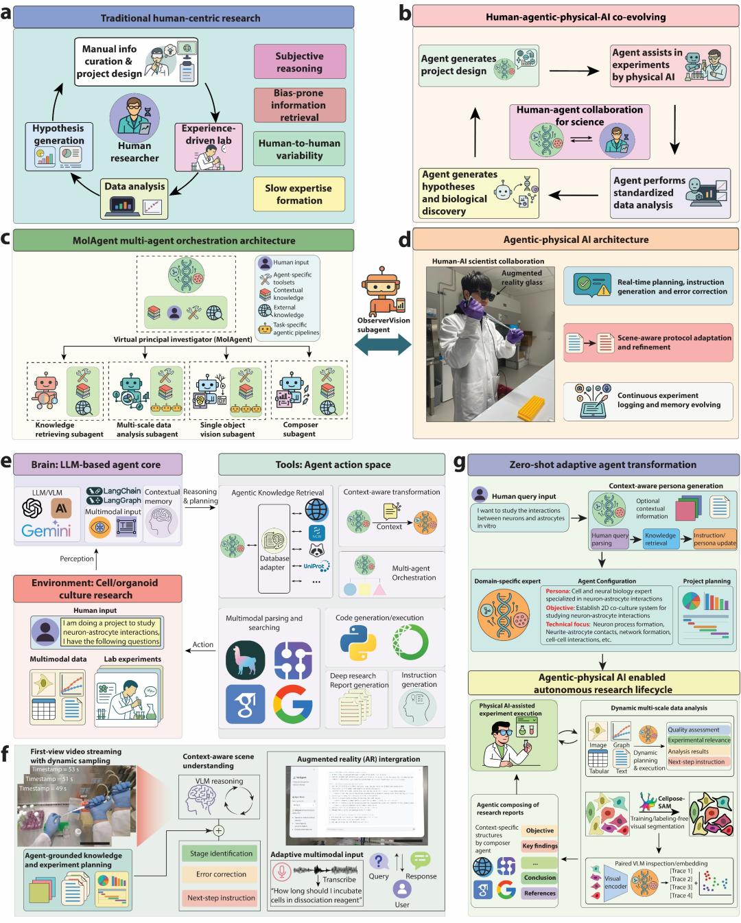 这一系统首次将人类研究者、具身AI智能体与可穿戴混合现实与增强现实(MR/AR)硬件深度融合,构建出一个与人类能够同时感知、推理并直接共同参与真实世界实验和制造过程的集成化智能平台。
