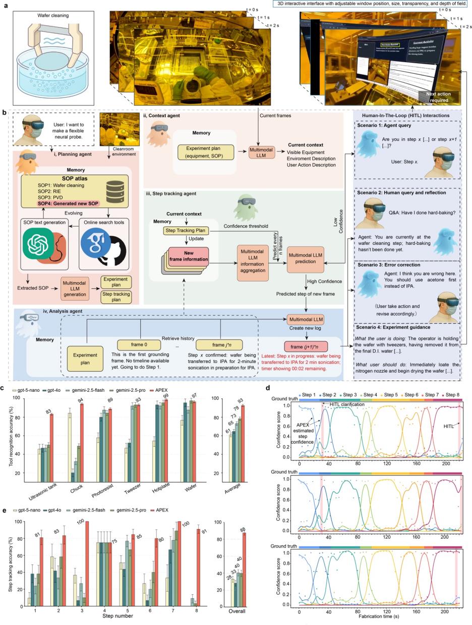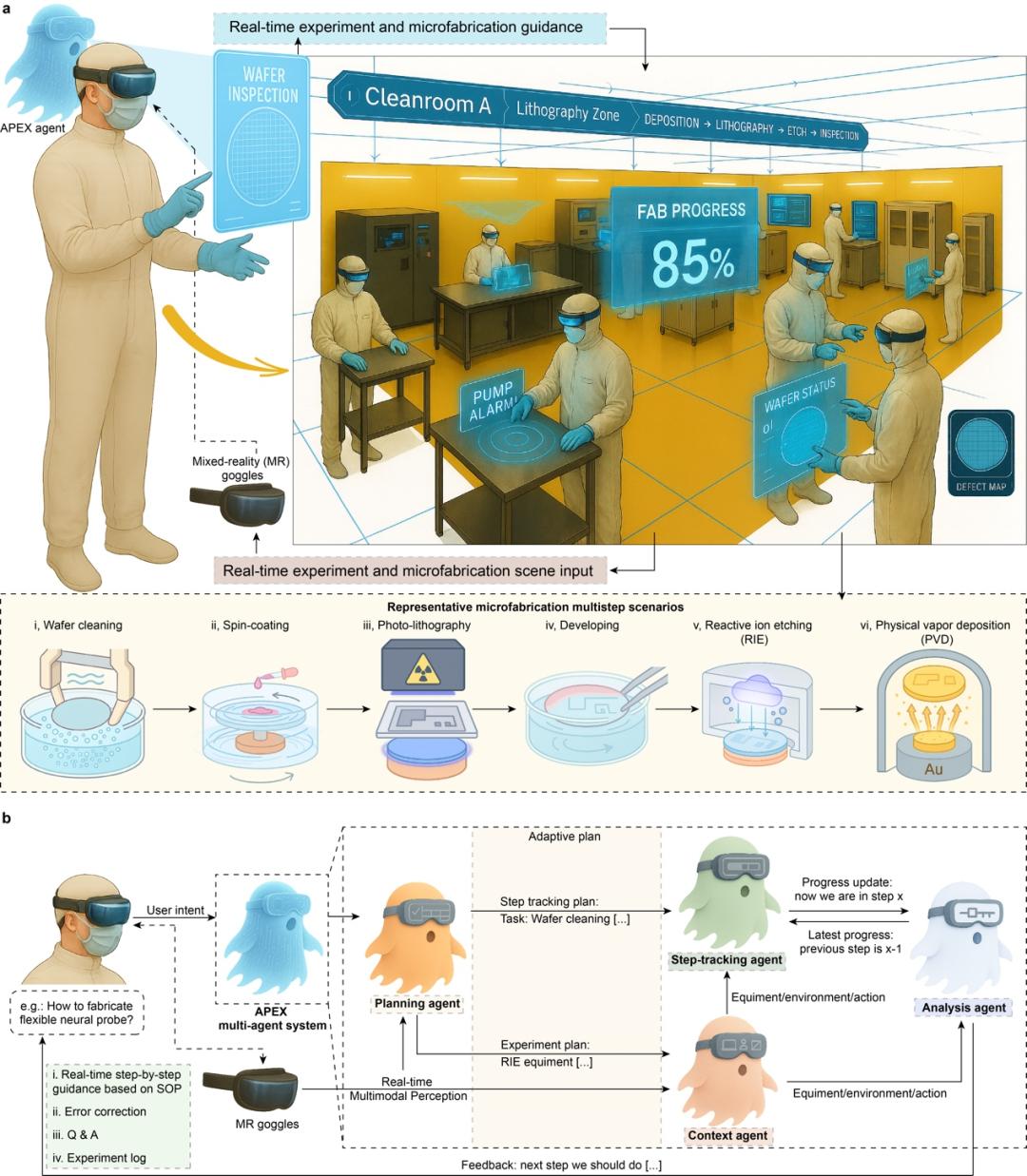 APEX人机共融界面,通过多智能体协作实现超净间里芯片制备阶段识别、操作纠错与实时指导,支持芯片制备的闭环协作