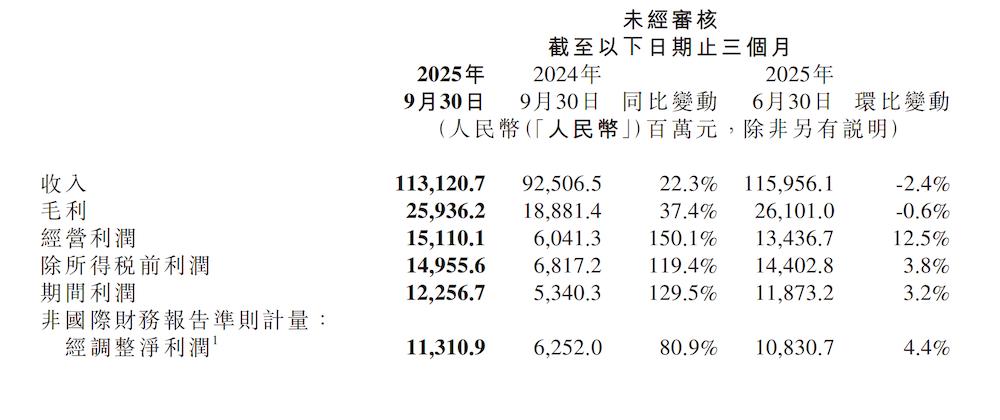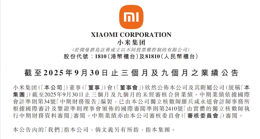 在研发开支方面,小米集团2025年第三季度的研发开支为91亿元,相较2025年第二季度的78亿元增加16.7%,主要是基于与智能电动汽车及AI等创新业务及手机×AIoT相关的研发项目进度,以及研发人员薪酬增加所致。