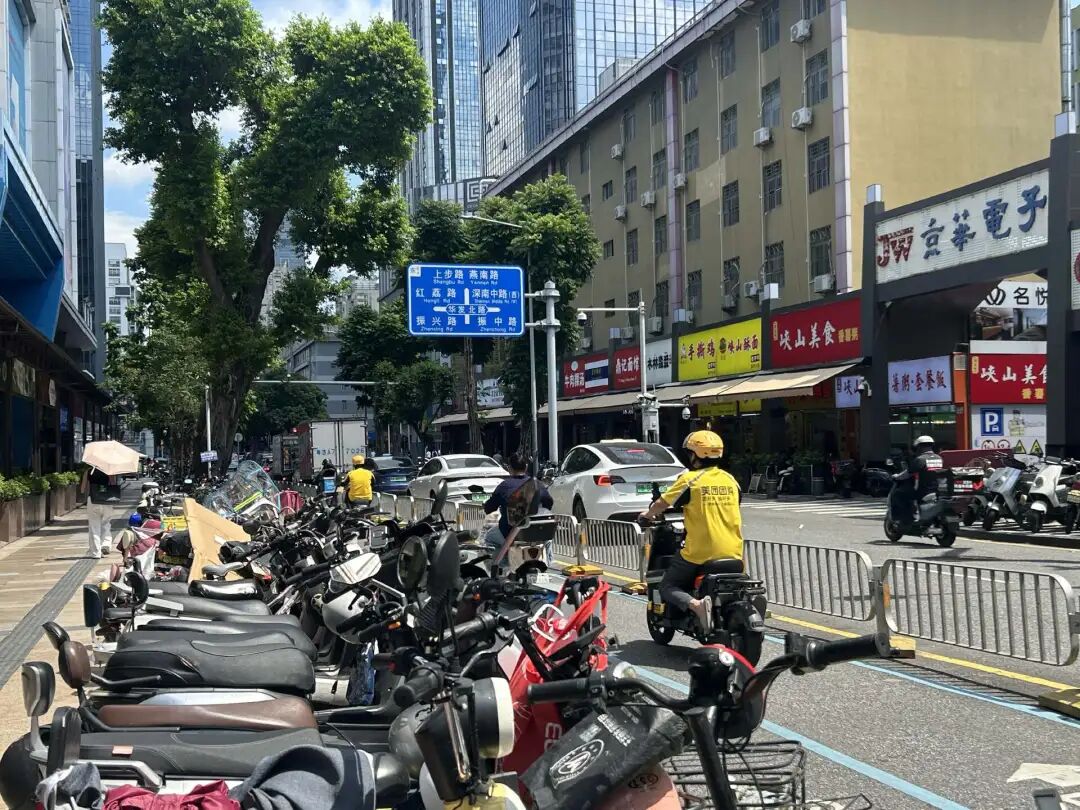 从燕南地铁站出来,是一条东西向的单向两车道——振华路。这是最适合商业云集的街道尺度。从站口向西,穿越华发路、华强北步行街,一直延伸到华富路口(九方购物中心),1公里的街道,一溜全是大大小小的食肆,不止上百家。