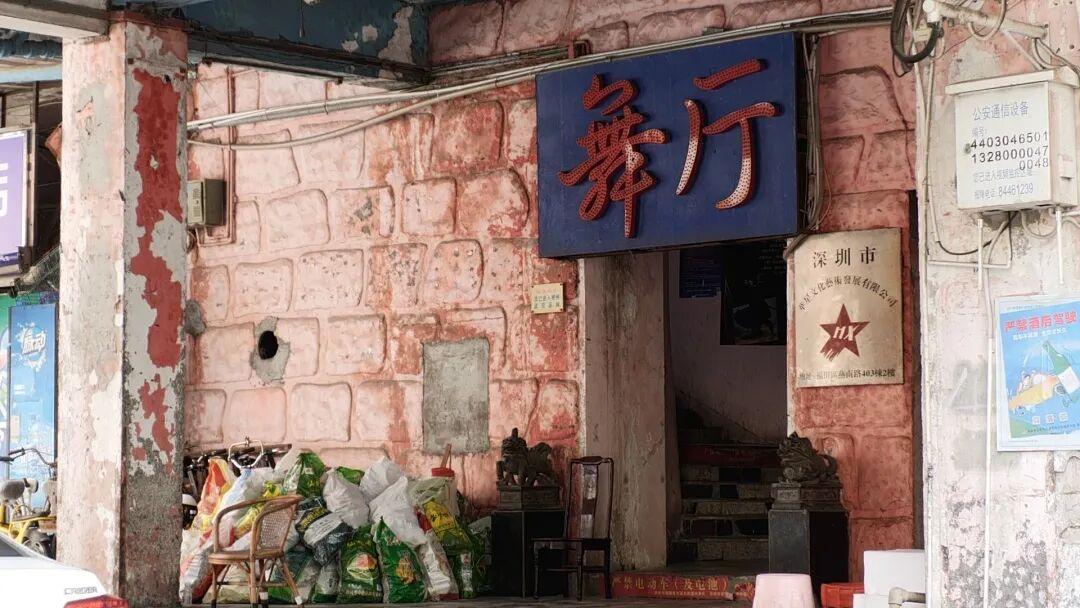 若是拐到酒店的另一侧转角,从一个不起眼的门洞里往里瞧,会看见大红色竖排的“舞厅”二字,类似霓虹的材质,在潮热的回南天里给人梦回漠河的错觉。