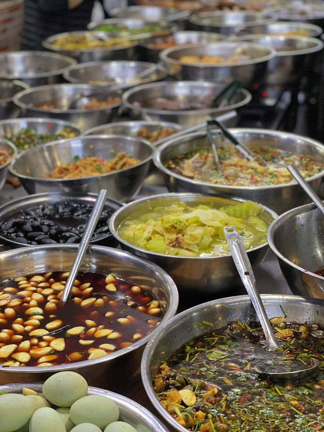 这里面既有连锁品牌——快餐、烤肉、米线;更多的是带着各地特色小本经营的个体餐馆——站口往前走点,你会看见一个戴着回 回帽的大叔在门口揉面,隔壁新疆小哥往竹签上串着羊肉;